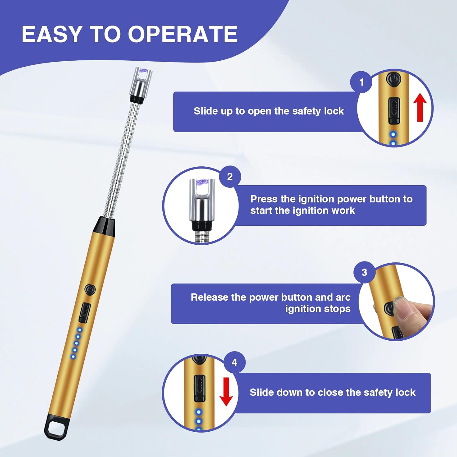 The candle lighter adopts plasma arc and flame-less technology, with no oil, gas, or flame design is safer than ordinary fuel lighters. It not only adds a safety switch lock that prevents children from accidentally touching it, but also sets the function of automatic power-off every 10 seconds, whic...