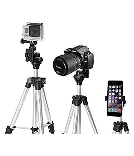 H S 330 A Aluminum Portable Tripod Stand 3 Way Head for Digital Camera Camcorder with Mobile Holder Tripod Kit (Supports Up to 3000 g)