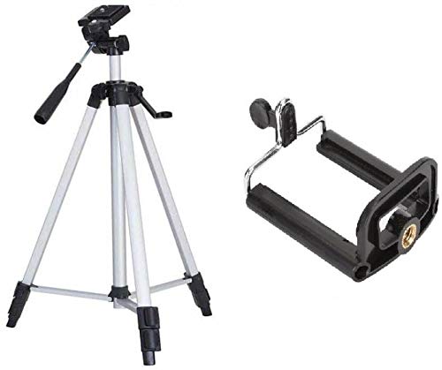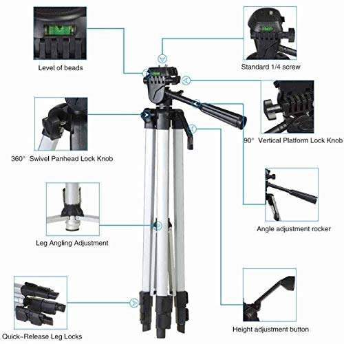 3366 Aluminum Tripod (55-Inch), Universal Lightweight Tripod with Mobile Phone Holder Mount & Carry Bag for All Smart Phones, Gopro, Cameras