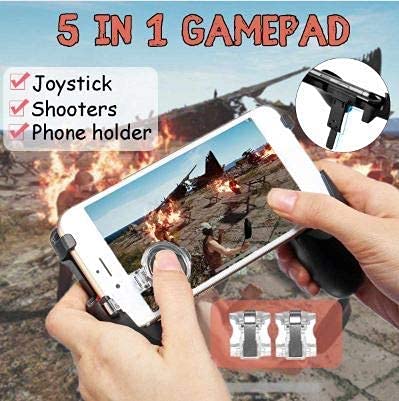 5 in 1 Mobile Gamepad with 2 Trigger, Holder Grip, Movement Button Compatible with PUBG, KRAFTON, Garena Free Fire, Call of Duty Mobile for All Android and iOS Phones (Pack of 2)