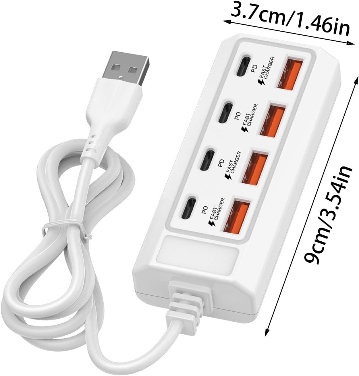The USB Splitter allows you to charging up to 8 devices simultaneously with its 4 USB and 4 Type C female Port, making essential accessory for multiple dev...