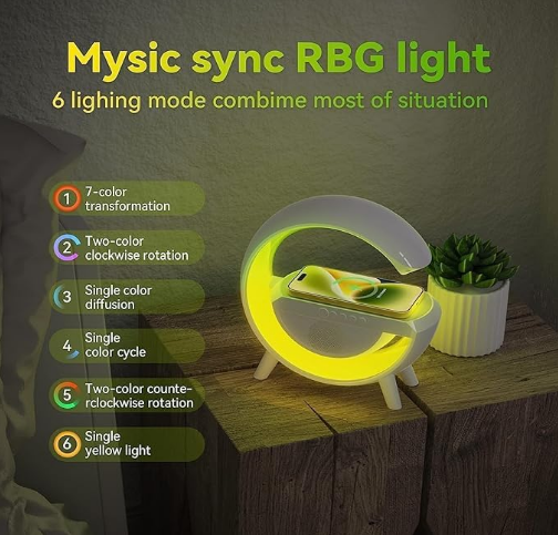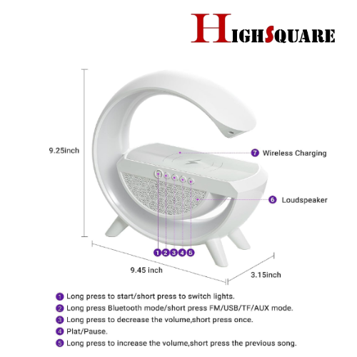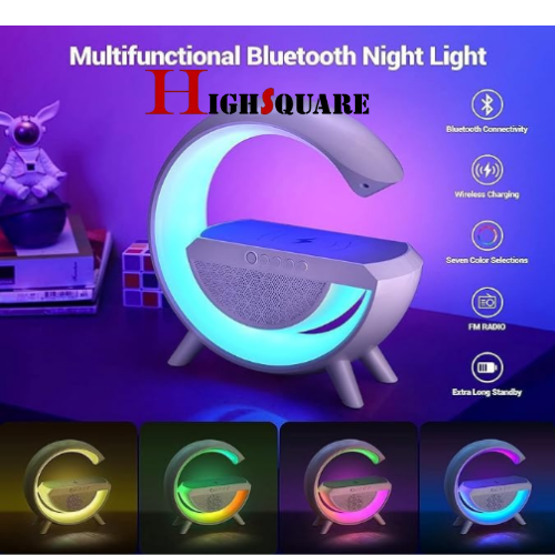 High Square G-Shape Speaker Lamp - 3 in 1 Night Light Bluetooth Speakers with 15w Wireless Mobile Charger,