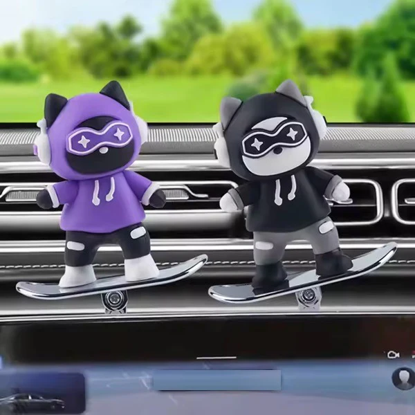 Sliding Action: Watch the charming black and white cat figurine effortlessly slide back and forth on its miniature skateboard with the movement of your car. The smooth-gliding wheels ensure a mesmerizing experience.