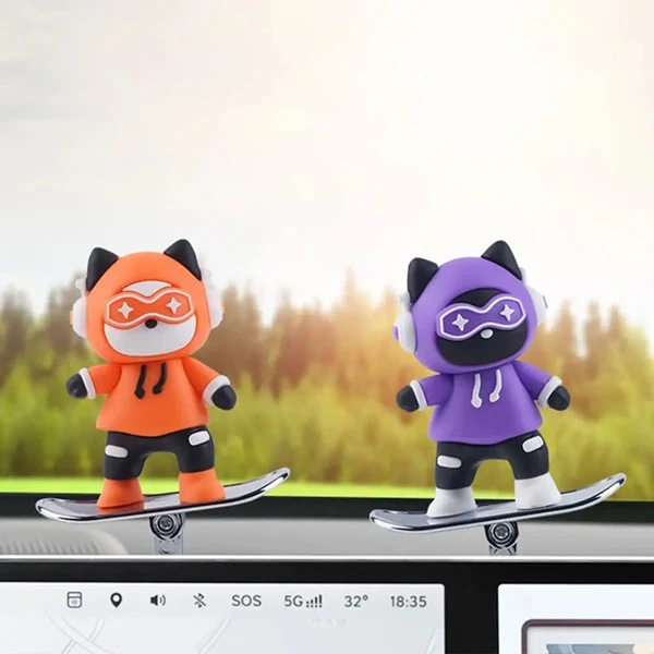Car Sliding Skateboard Cat, Cute Ornaments for Car Dashboard Decoration and Interiors