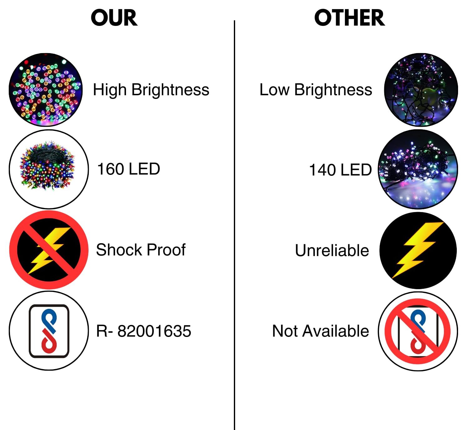 Extra-Long 40 Meter LED String Lights Perfect for extensive indoor and outdoor decoration, this 45-meter-long string of lights comes with an AC plug, making it ideal for decorating large spaces during Diwali, Christmas, and other festive occasions. 8 Modes & Color Changing Equipped with a ...