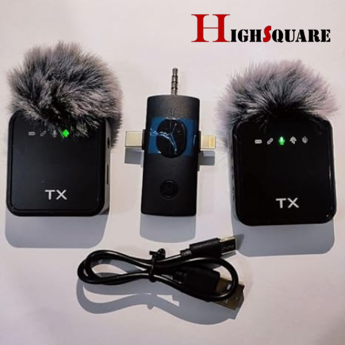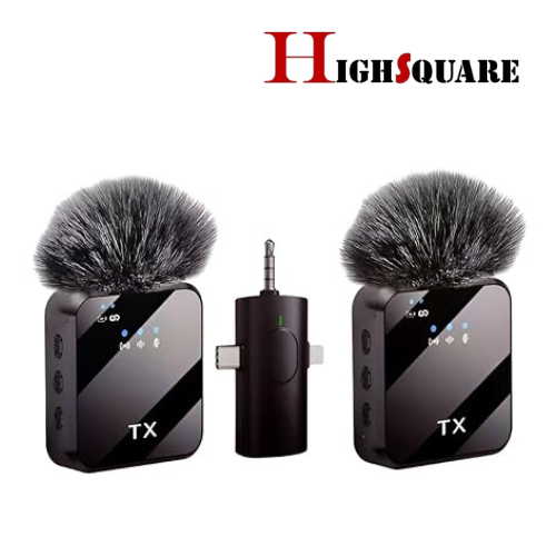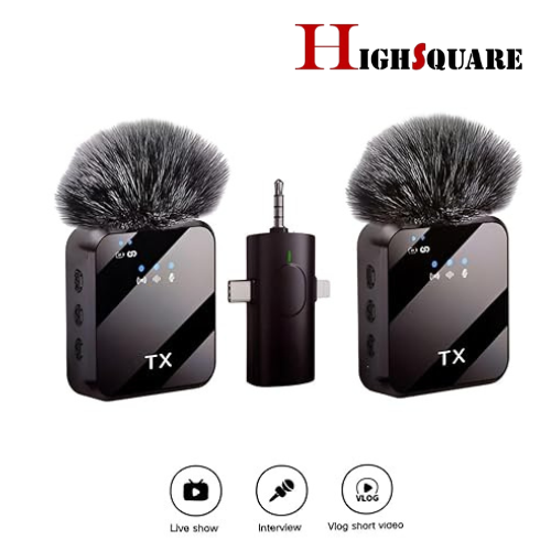 High Square F11-2 3 in 1 Wireless Microphone, Noise Cancellation Wireless Mic for Youtubers, Video Recording, Facebook, Compatible with Type-C Android/iPhone/Cameras/Laptop (Dual 2X Transmitter