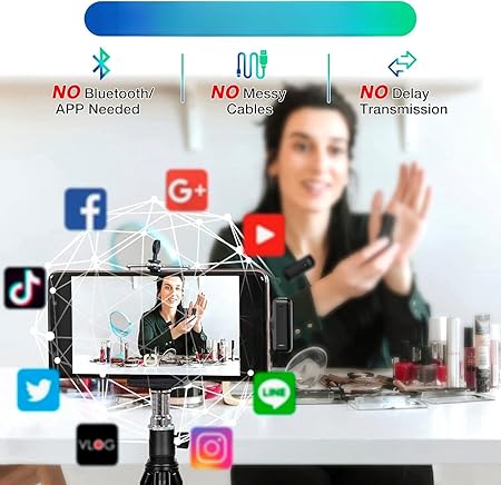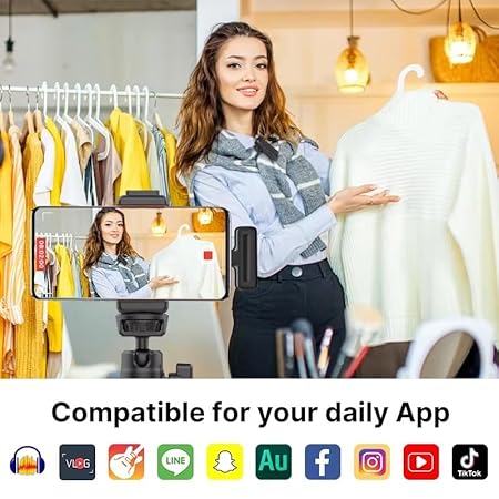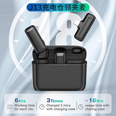 H S J13 Wireless Lavalier Microphone for YouTube, Vlogging, Interviews, Singing, Dual Cordless Mic with Noise Cancellation, Compatible with Android Support Type-C, iPhone, DSLR & Camera