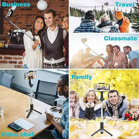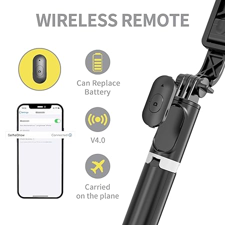 H S R1 Bluetooth Selfie Sticks with Remote, 3-in-1 Multifunctional Selfie Stick Tripod Stand Mobile Stand Compatible with All Phones (Black)