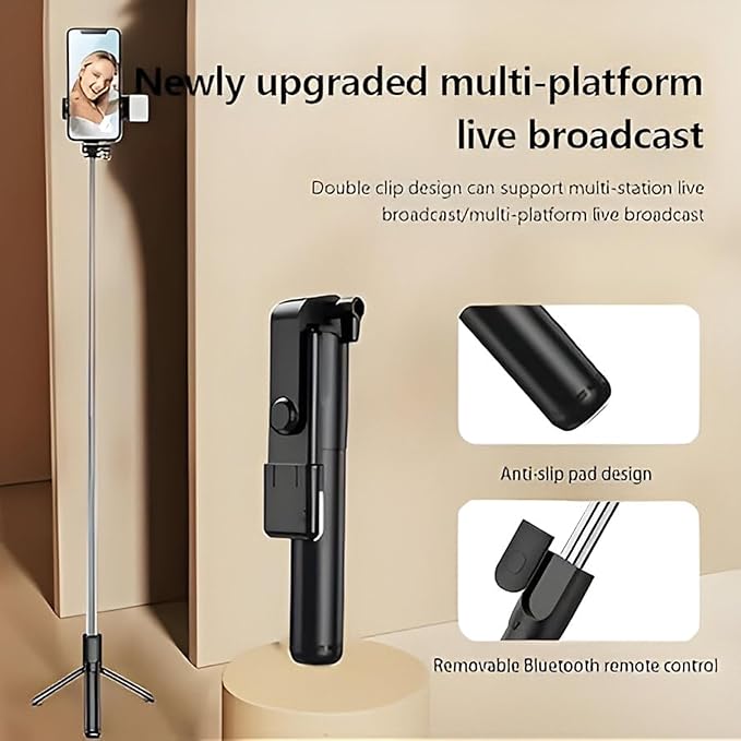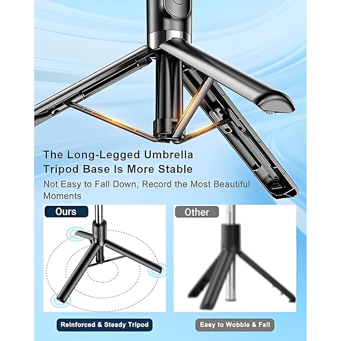 H S R1S-L Tripod Selfie Stick Mini LED Fill Light 67 Inch Long/7-Section Stable Base/BT Remote/3 in 1 Multifunction for Vlogging/Photography/Videography for All Mobile Smartphones