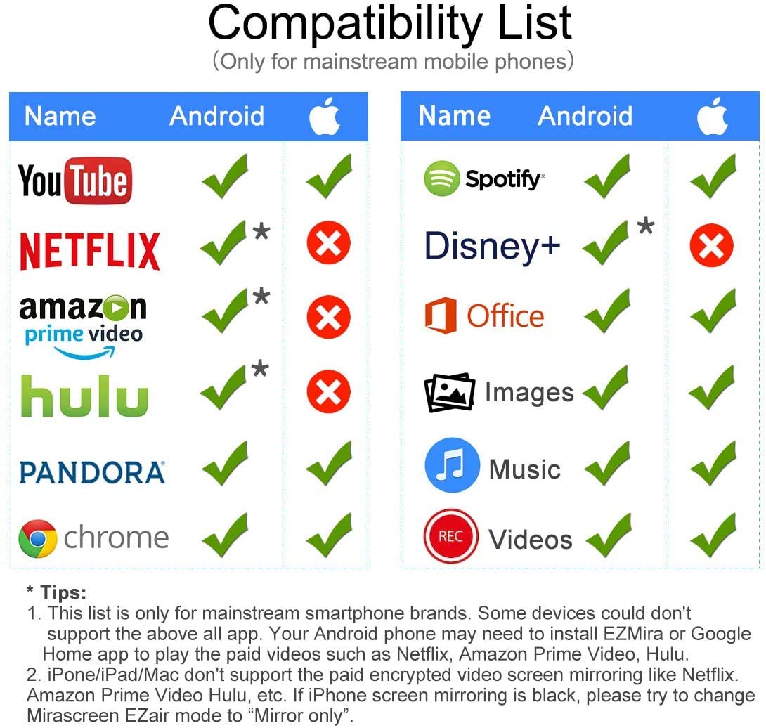 HDMI Dongle is a wireless display receiver mirroring device with 4K &1080P HD resolution. Superior to HDMI Cable. Users can easily cast videos or games from a device small screen to a big screen without switching mirroring modes. This Media Streaming supports multi-OS mirroring which including W...
