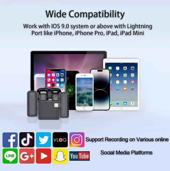J13 Wireless Microphone, Noise Reduction Mic , Wireless Mic for Video Recording