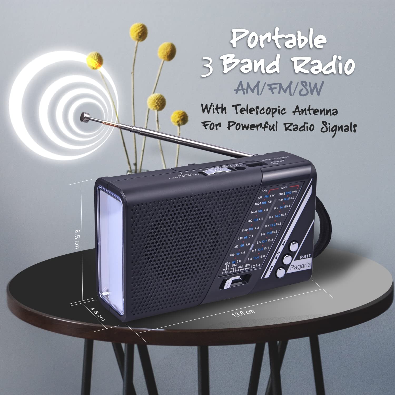 | Special Feature | 3 Band Radio, Torch, Bluetooth, Rechargeable, USB/TF |