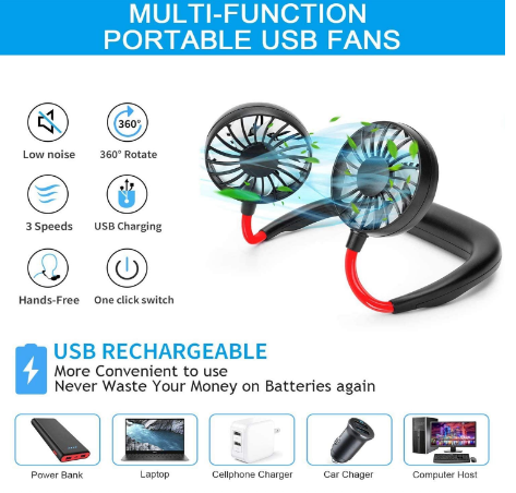 Stay Cool Anytime, Anywhere with the Portable Neck Fan! Beat the heat with the One94Store Portable Neck Fan, designed for hands-free, comfortable cooling whether you're at work, traveling, or enjoying outdoor activities. This lightweight and ergonomic wearable fan provides a refreshing bre...