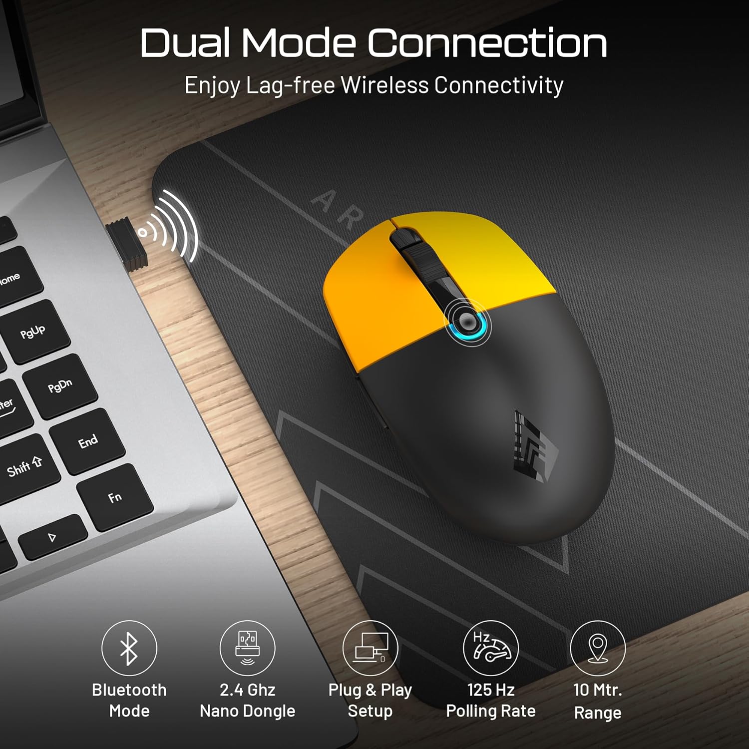 Wireless Mouse, Dual Mode Bluetooth 5.3/2.4GHz USB Nano Dongle 10M Range,3 DPI Settings